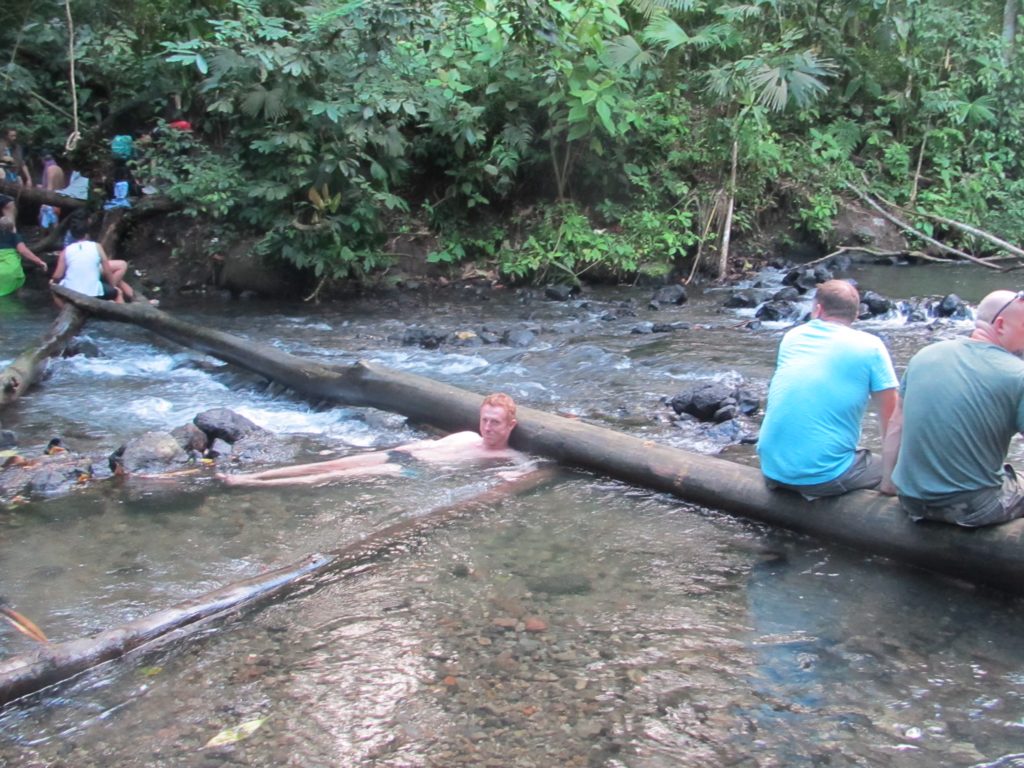 Am Rückweg suhlten wir uns noch ca. 1 Stunde in den „Free Hot Springs River“ gegenüber von „Tabacon Hot Springs“. Wie fast alle Touristen, nahmen wir den nicht sehr moderaten Zugang. Es gab viel bessere Optionen.