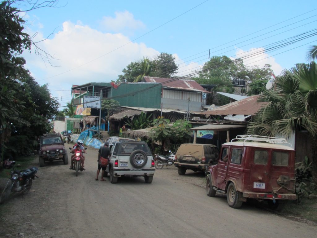 97 km / 01:20 schon waren wir in Sierpe. Auto gleich bei der Fähre geparkt (3000 Colones ~ € 4,50 pro Nacht). Wir hatten schon über unsere gebuchte Unterkunft in Drake die Tickets für die Überfahrt von Sierpe nach Drake gebucht. 11:30 ging’s los; den Fluss entlang und dann noch ein bisschen Küste; 1 Stunde später waren wir am Ziel. Preis war $15 pP; eigentlich billig für das Land. ? Raus aus dem Boot, hinein ins seichte Wasser, Gepäck in Empfang nehmen und ab in die Unterkunft. Wir wurden sogar mit dem Auto hingebracht. Fahrzeit ~ 3 Minuten, aber am Berg !!!